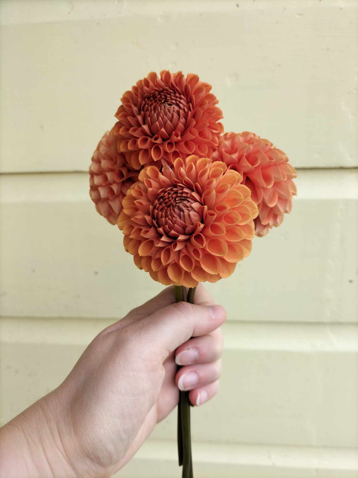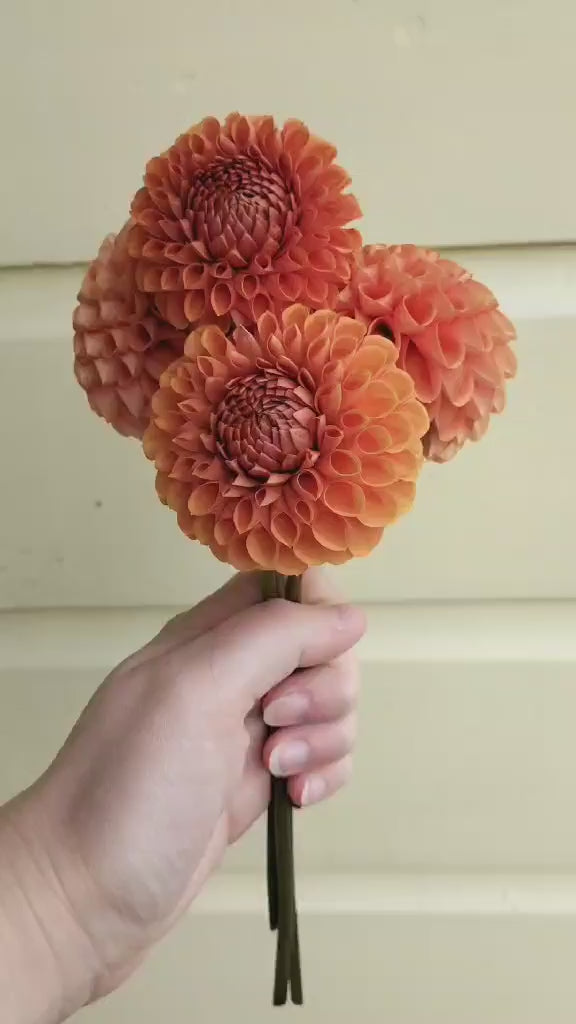 Gorgeous caramel coloured balls, gorgeous understated blooms with dark long stems.