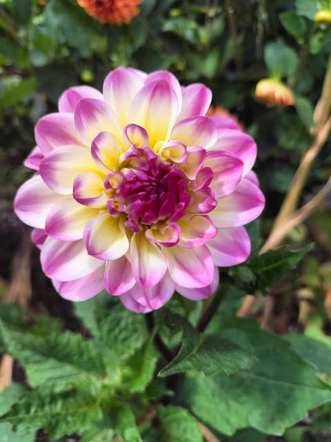 Delicate blush colours, dark pink to purple with yellow at base of petals.