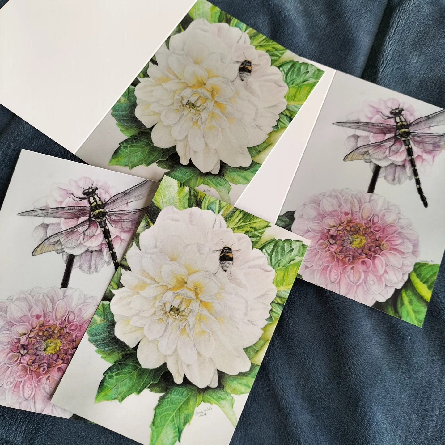 All images taken from my open edition runs - each dahlia image has a little factoid on the back about the flower.