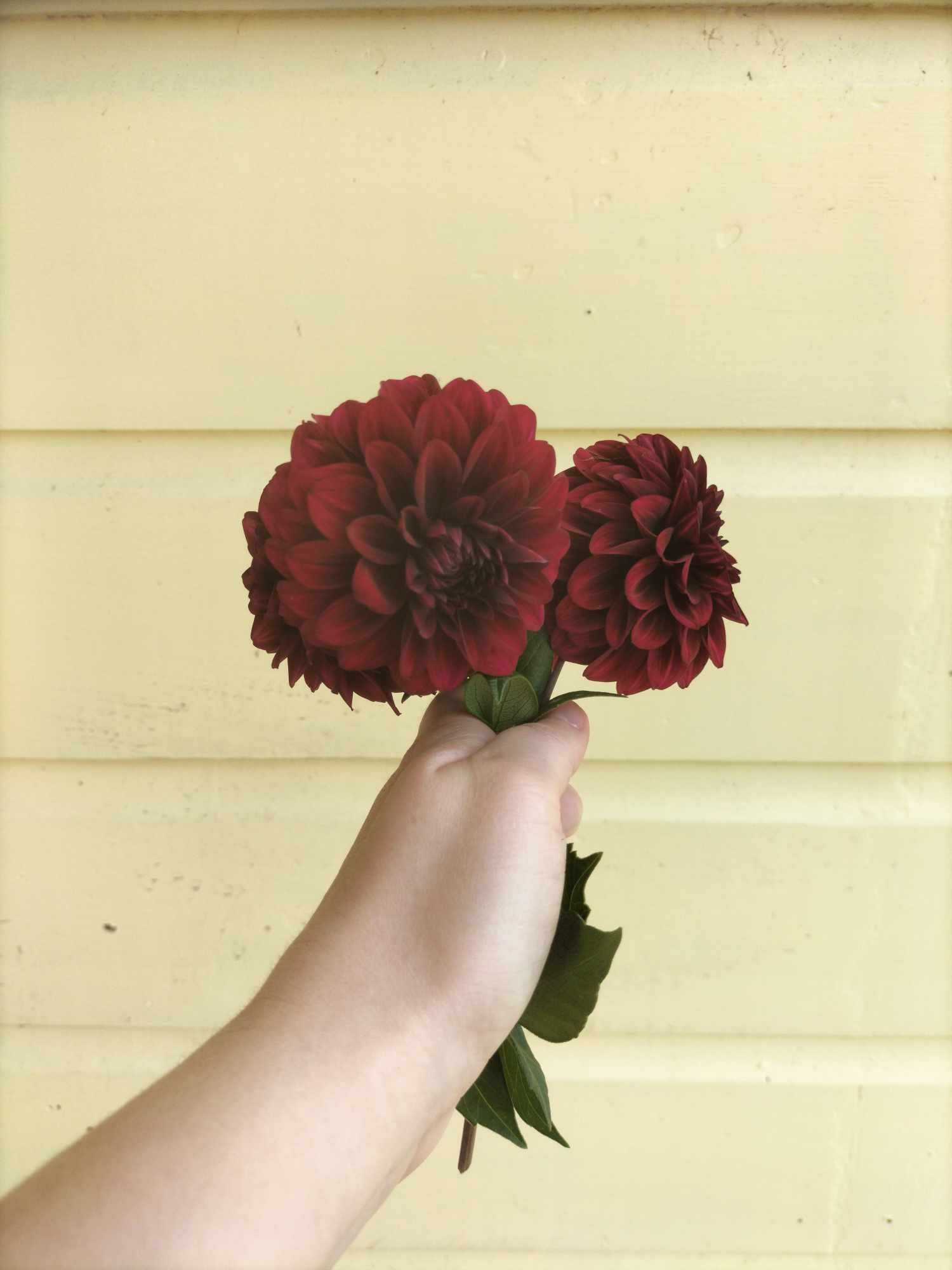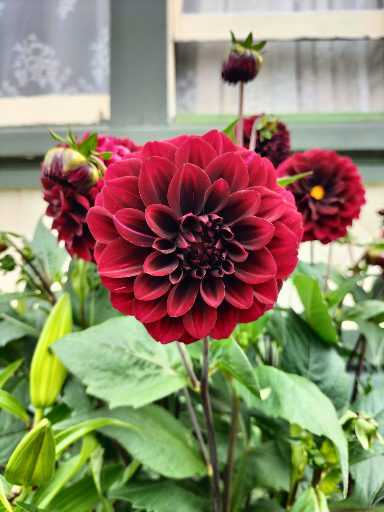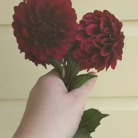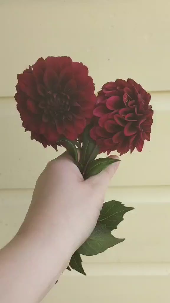 Gorgeous red to black blooms that curl outwards, long lasting and prolific! Good vase life. Lovely dark stems.