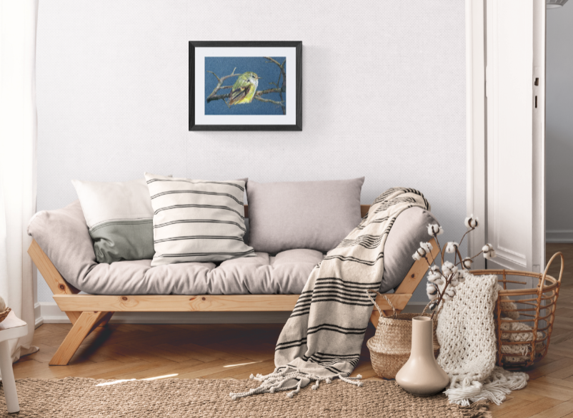 Or already in a frame (black wooden frame with silver matte) - ($450)